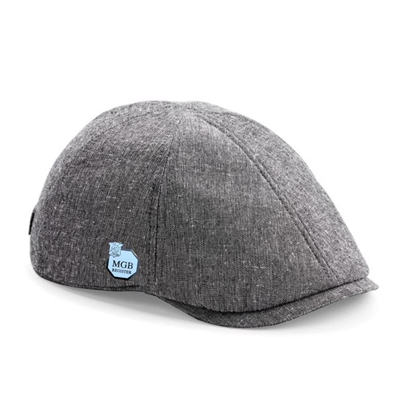 • Herringbone weave fabric. Snap fastening peak. Full quilted lining. Traditional styling. Includes MGB lapel badge!